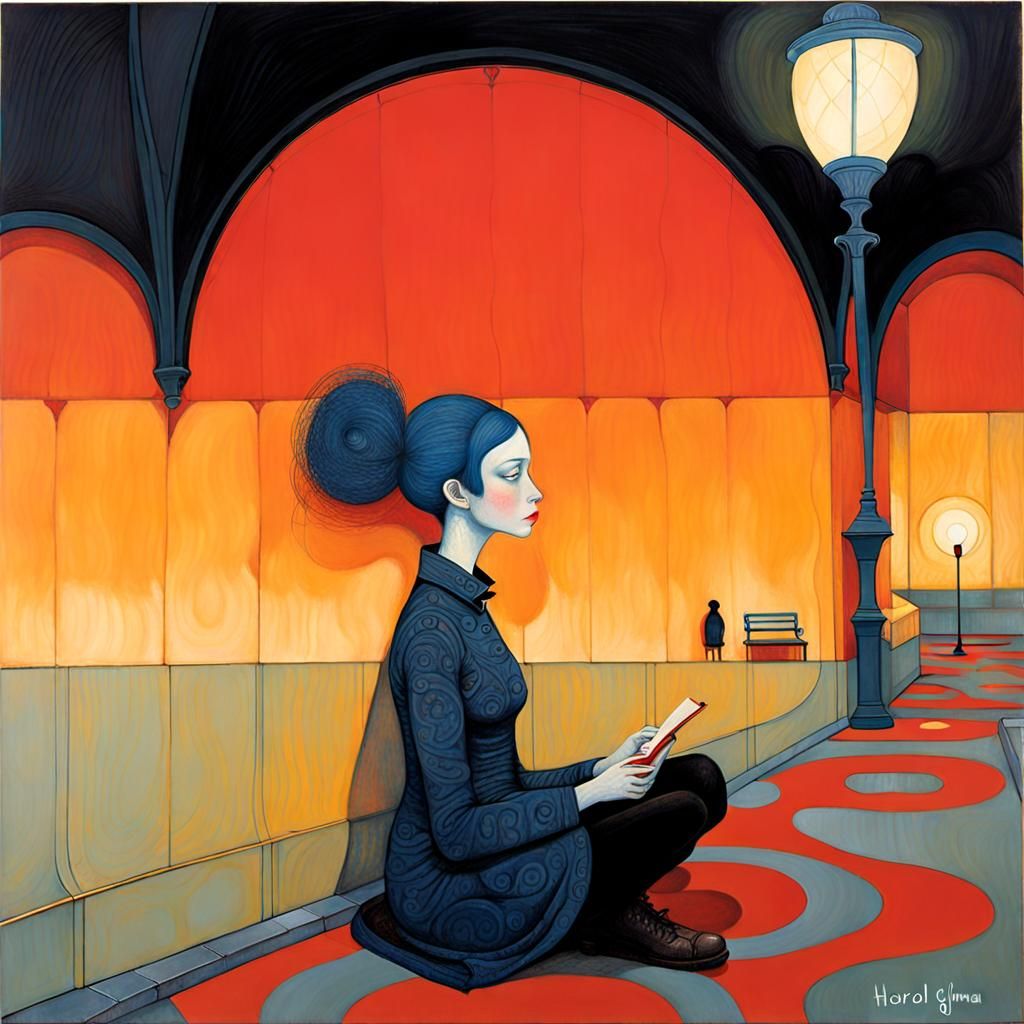 A digital painting of a person waiting. The portrait evokes a sense of introspection and solitude, rendered with layered textures and a muted color palette.