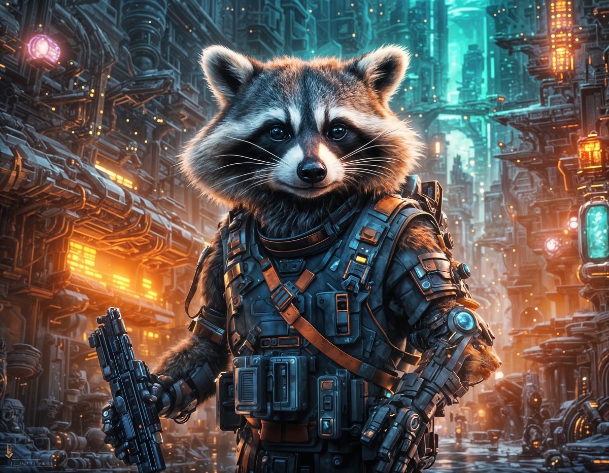 with kind thanks to @Hersende for the inspiration and original prompt which i modified to feature a Racoon instead of a C