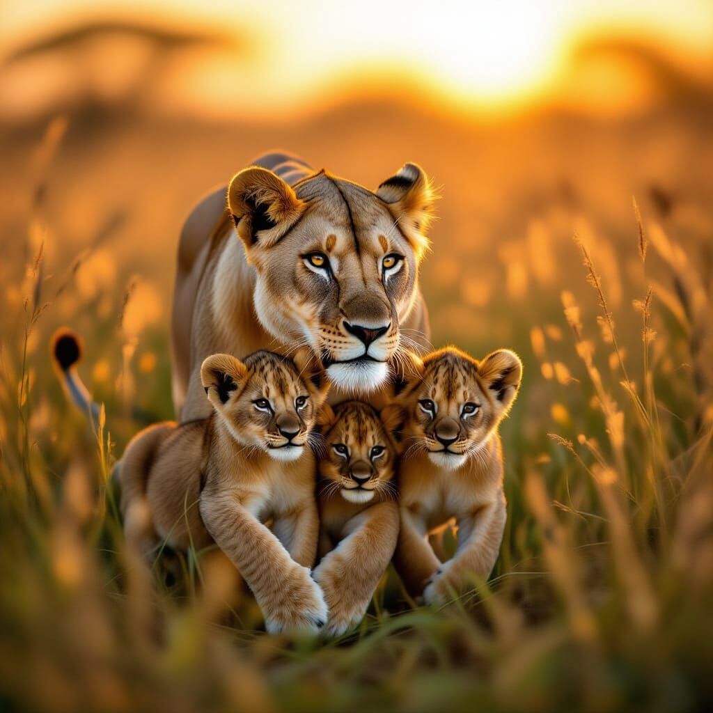Generate unique images of lion cubs and their mothers. It's free, fast, and easy with our AI.