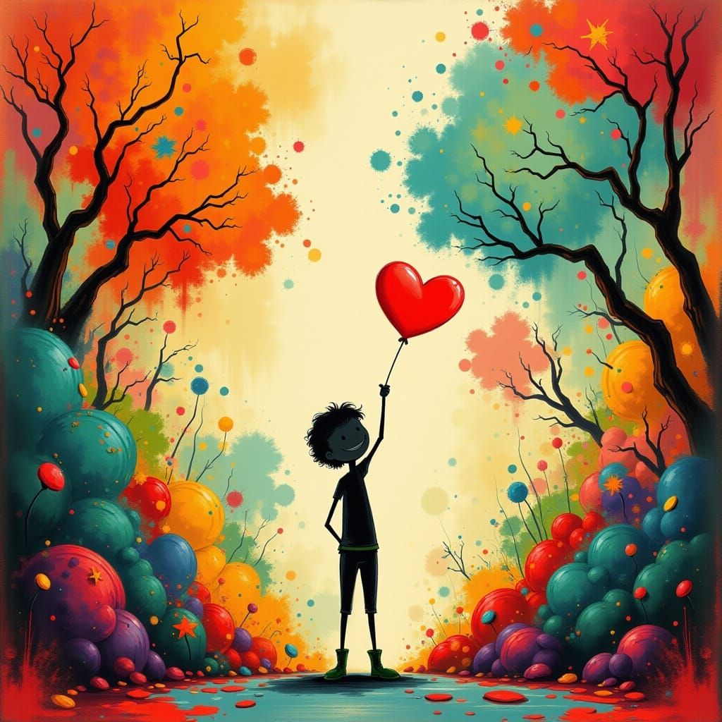 This image shows a person seeking support, depicted with warm colors and gentle lighting. The image contains vibrant, whimsical, and uplifting elements in a pop art aesthetic.