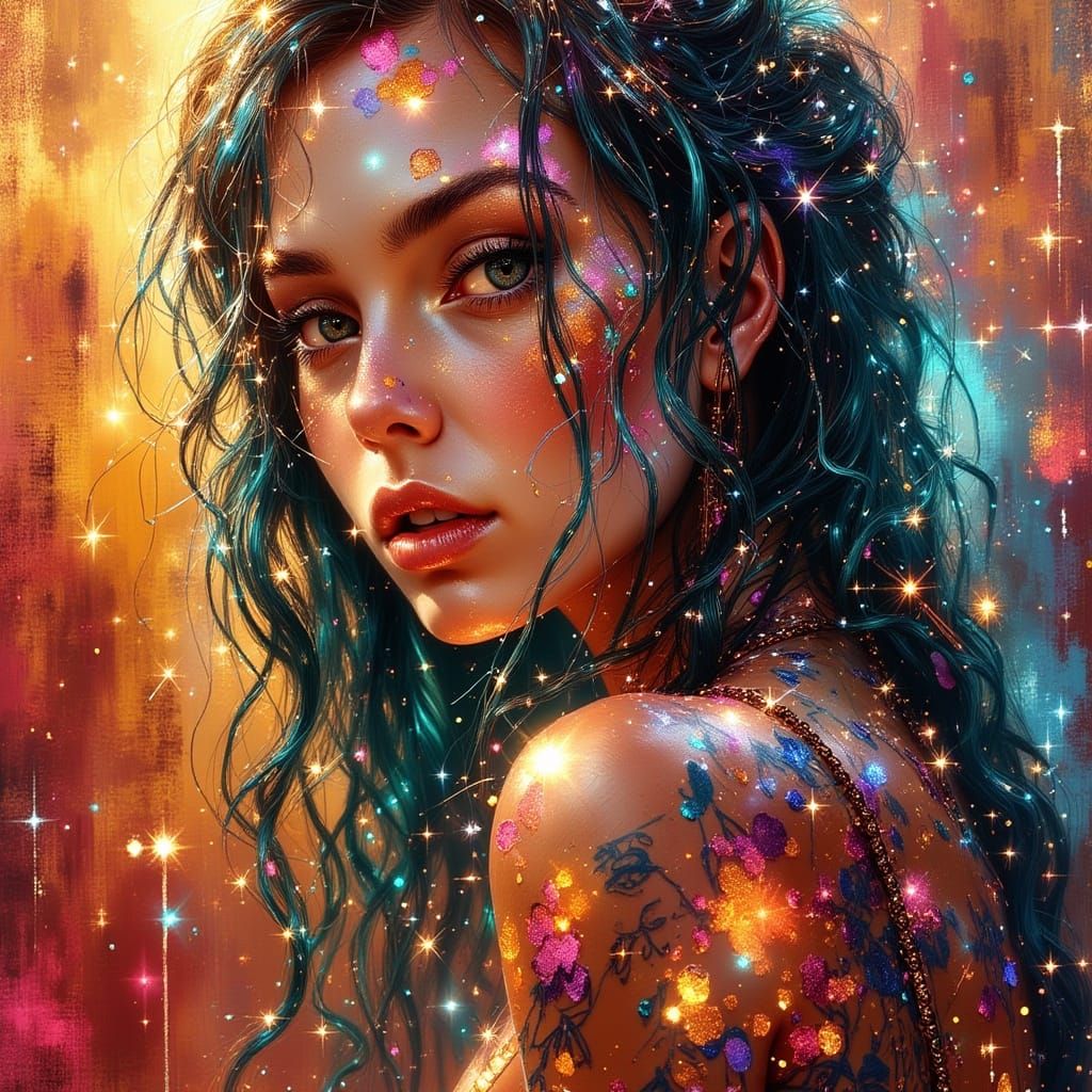 This image showcases a beautiful punk rock woman against a striking, colorful backdrop. The artwork features bold lines and a dynamic color palette, evoking a sense of rebellious energy.