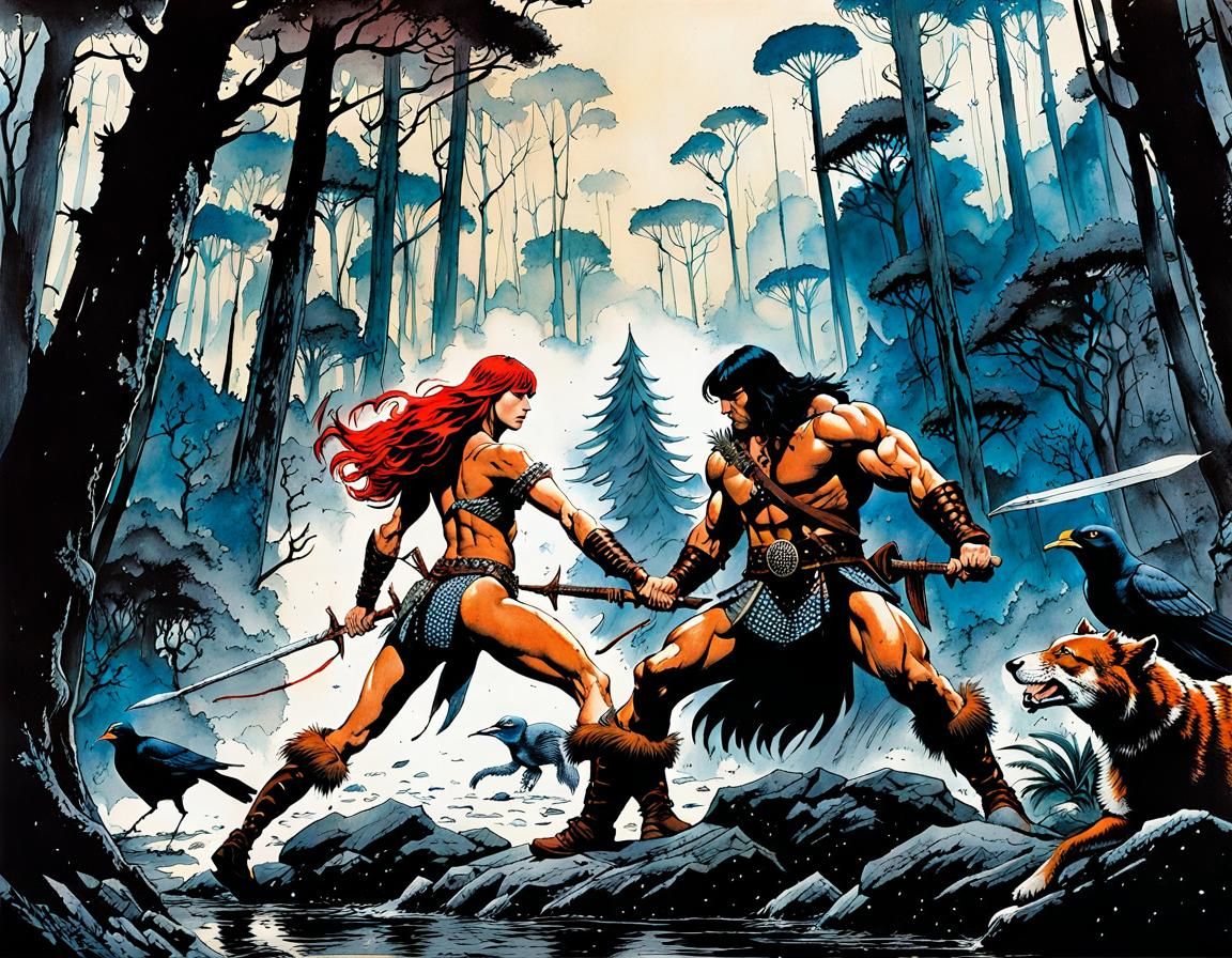 Unleash your creativity! Make your own Conan and Red Sonja images with our AI image generator.
