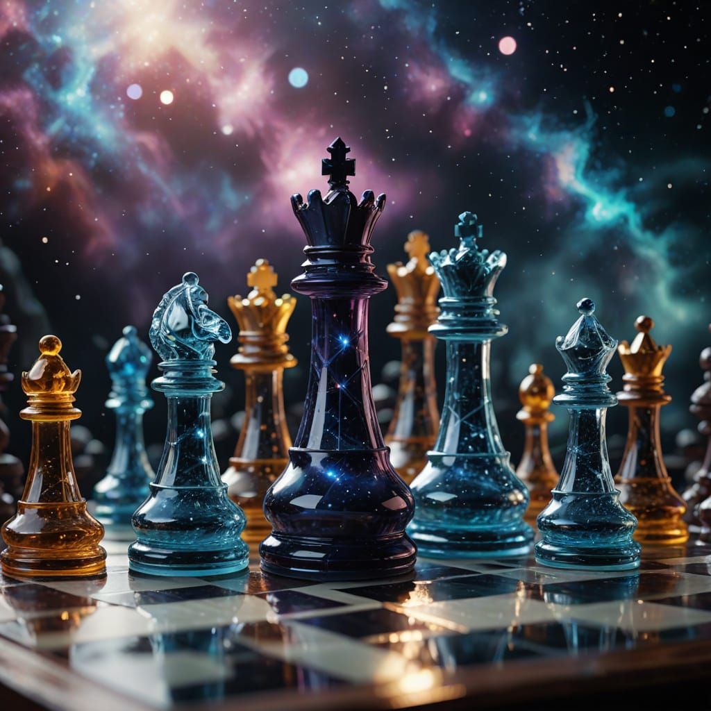 Conjure your own unique chess game scenes with crystal figures, galaxies, and magical effects. Free and easy to use!