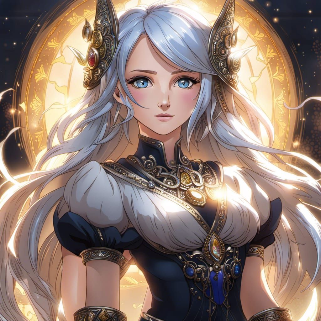 A striking portrait of a beautiful wizard with ice magic. Anime and manga art styles are combined with deep color and intricate detail to create a sharp, clear image.
