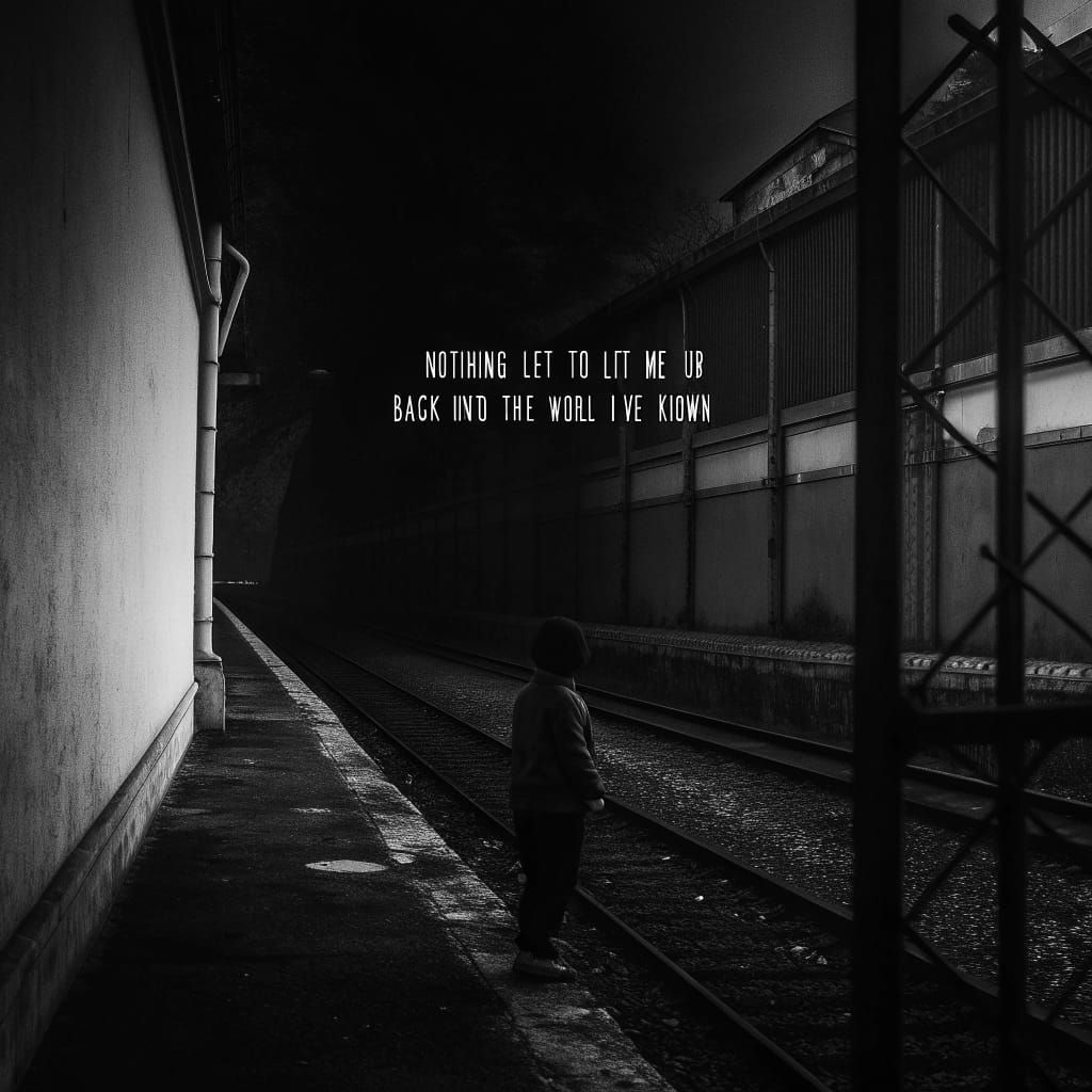 This image depicts a desolate scene, void of vibrant colors, evoking a sense of sadness and isolation. Created in a black and white aesthetic, it captures the emotional depth of a soul lost in darkness.