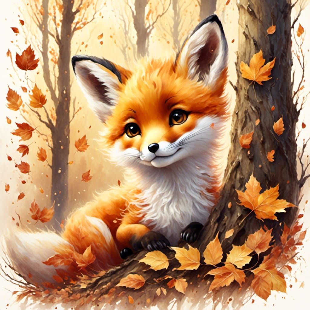 portrait of a<lora:Cute Foxes:1.0>cute baby fox with big round eyes and a sweet smile. He is sitting ...