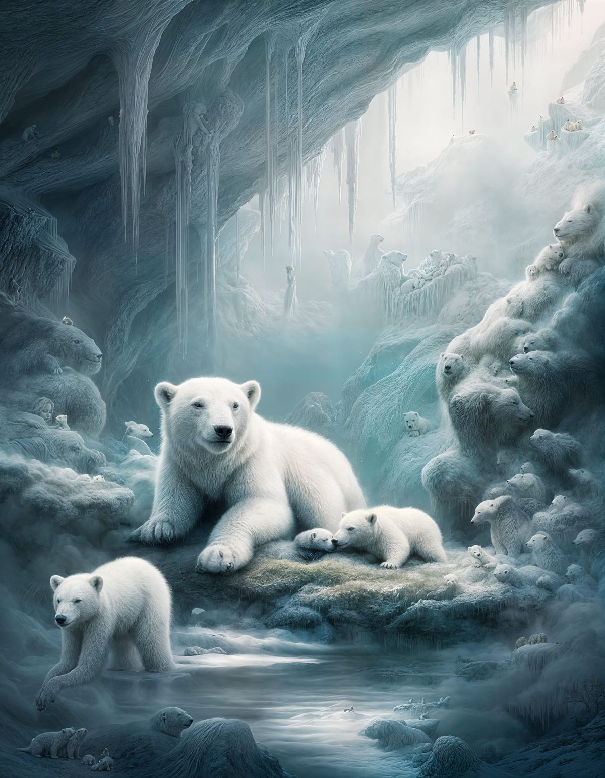 Generate your own dreamlike polar bear family images. Easy, free, and fun AI art creation.