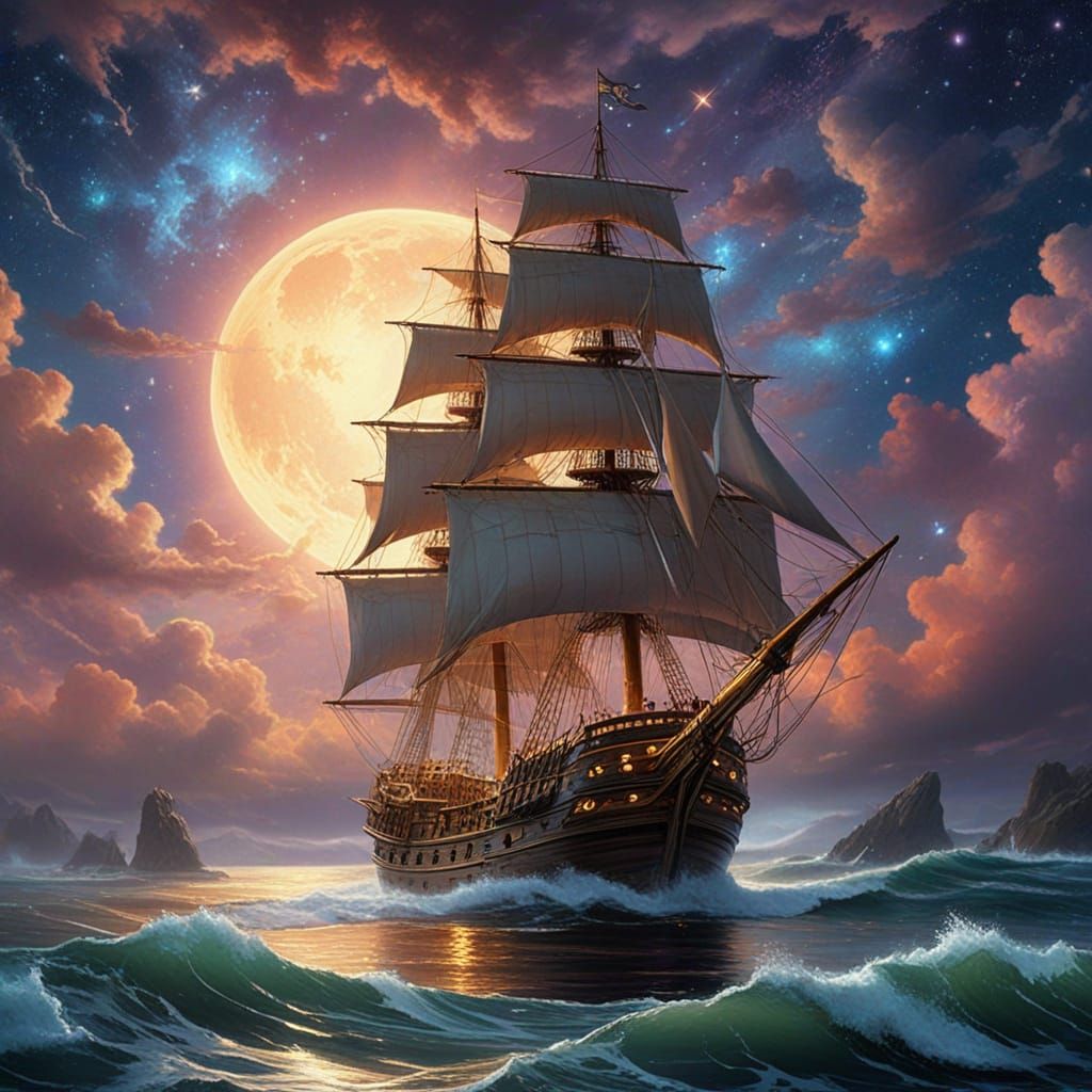 Easily design your own galleon sailing through the cosmos with our free AI image generator. No art skills needed!