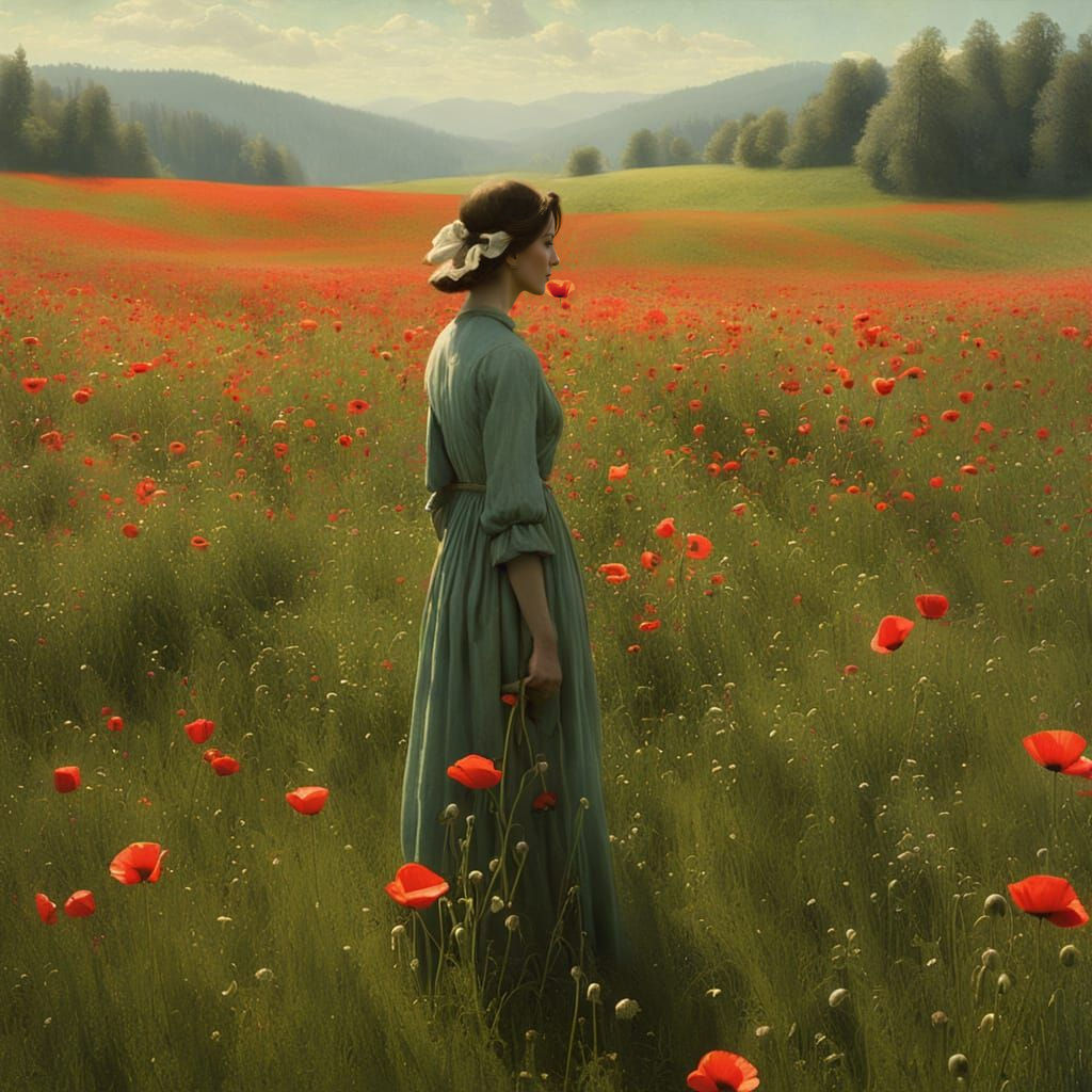 "Spring, Peasant, Meadow, POPPIES, Merry