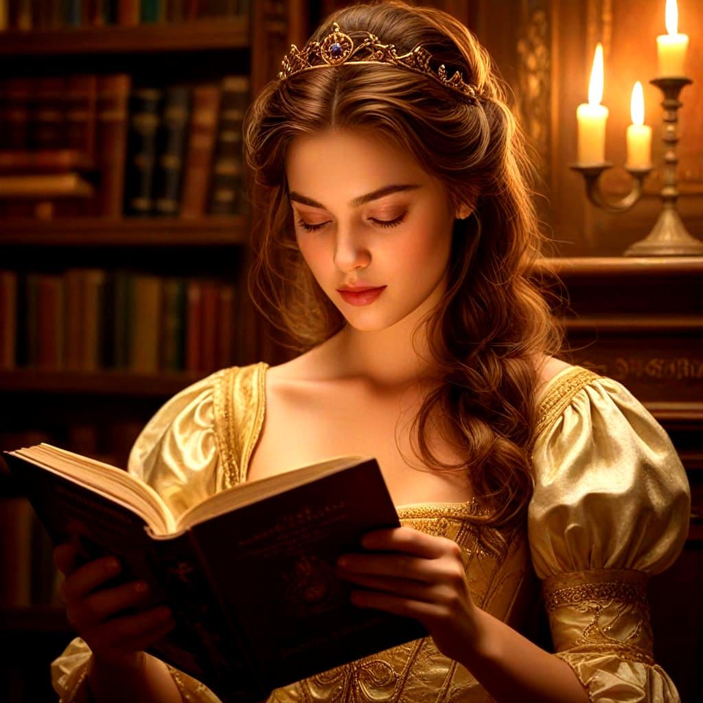 This image shows an AI-generated interpretation of Princess Belle. This depiction captures the essence of the beloved Disney character, reimagined by artificial intelligence.
