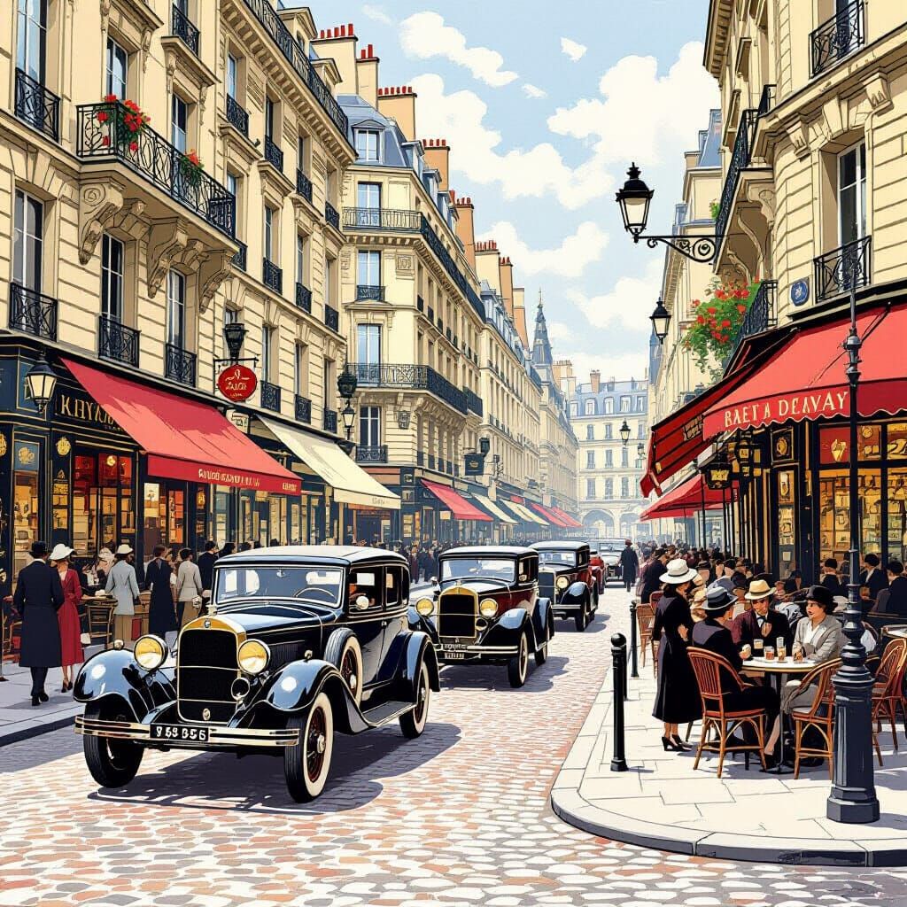 Generate unique 1920s Paris street scenes with vintage cars and fashion using our free AI image tool. Easy and fun!