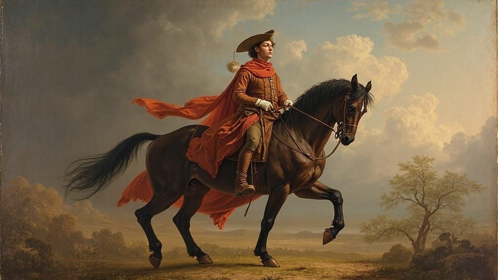 This image depicts a majestic horse with a strong focus on anatomical detail, rendered in a classic Baroque style reminiscent of 18th-century European art