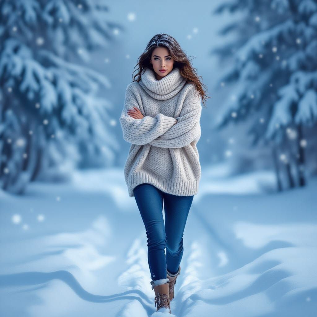 Easily design your own winter fashion images, including snowy scenes and stylish outfits, for free with our AI generator.