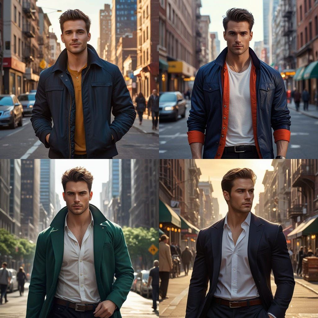 A striking image of a handsome, athletic man with tousled hair and deep eyes, embodying masculine strength and confidence. He radiates charm and inspiration, a modern hero of honor.