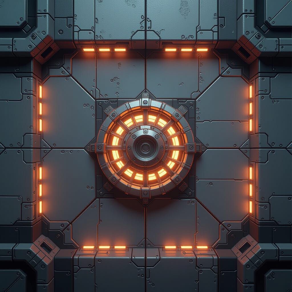 This image showcases a sci-fi themed floor tile pattern, viewed directly from above with flat lighting to highlight its intricate design elements.