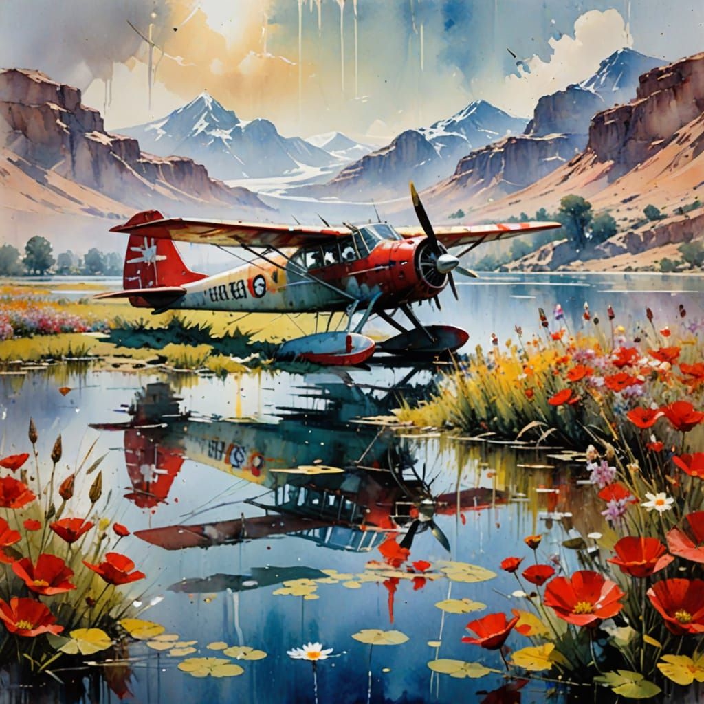 Easily generate your own watercolor art of a plane on a lake with our free AI image generator