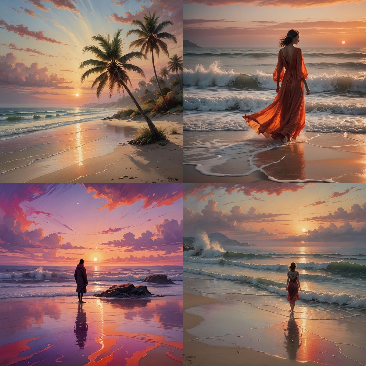 Create your own stunning beach sunset images with our free and easy AI image generator.