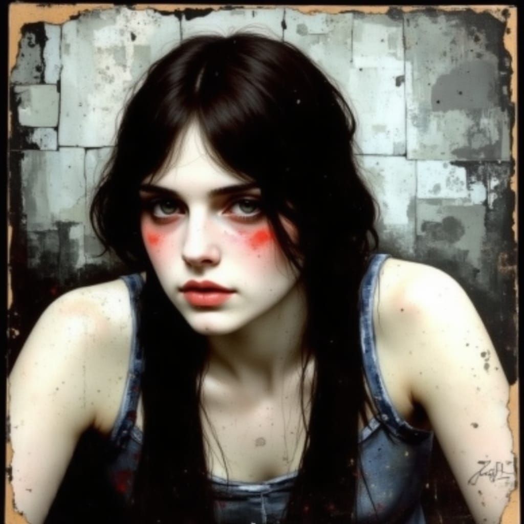This image shows a young woman in a surreal portrait with pastel coloring. The aesthetic evokes art nouveau with bromoil print techniques, calling to mind pre-Raphaelite paintings.