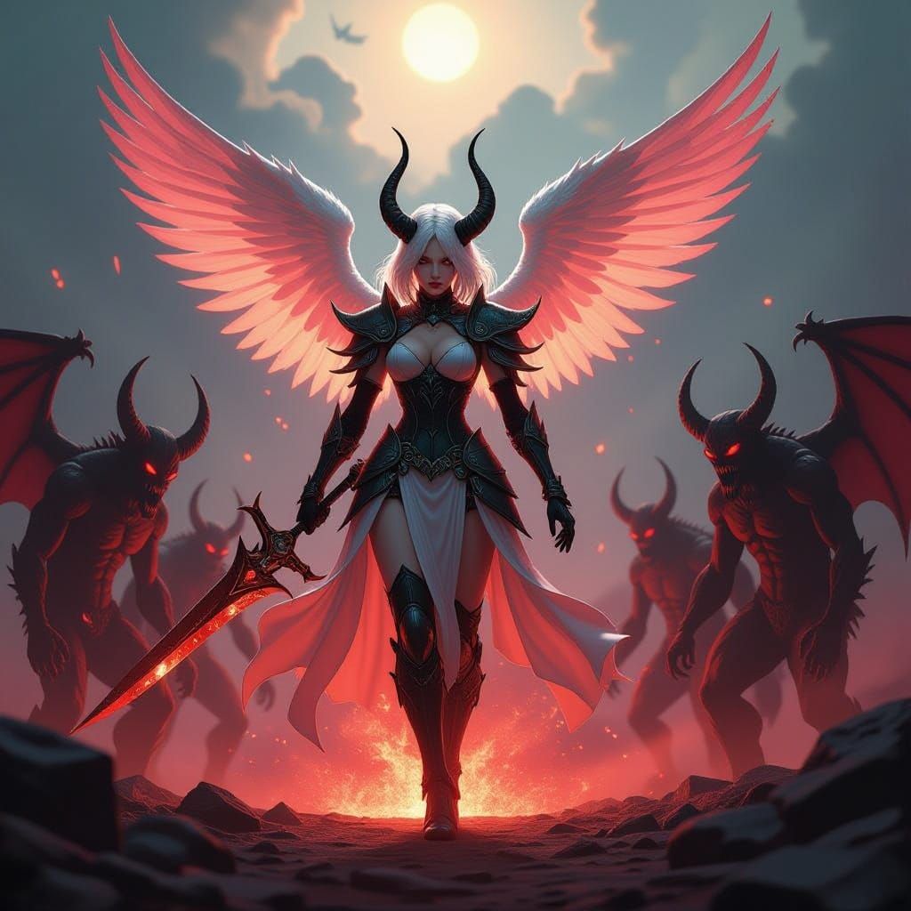 Design your own Hellish landscapes with our free AI image generator, featuring demons and angels in epic battles