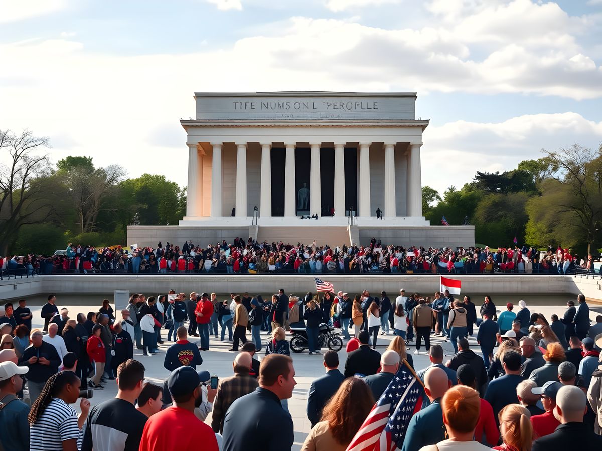 This image depicts a powerful moment in American history, with a young Martin Luther King Jr. standing at the Lincoln Memorial, addressing the nation on civil rights, justice, and unity. The iconic landmarks of Washington, D.C. serve as a backdrop for his poignant message, highlighting the ongoing strugg...