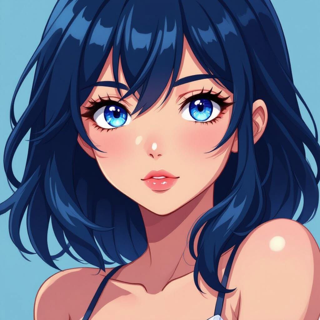Easily generate your own AI images of pretty girls with blue eyes and dark blue hair. Free and simple to use!