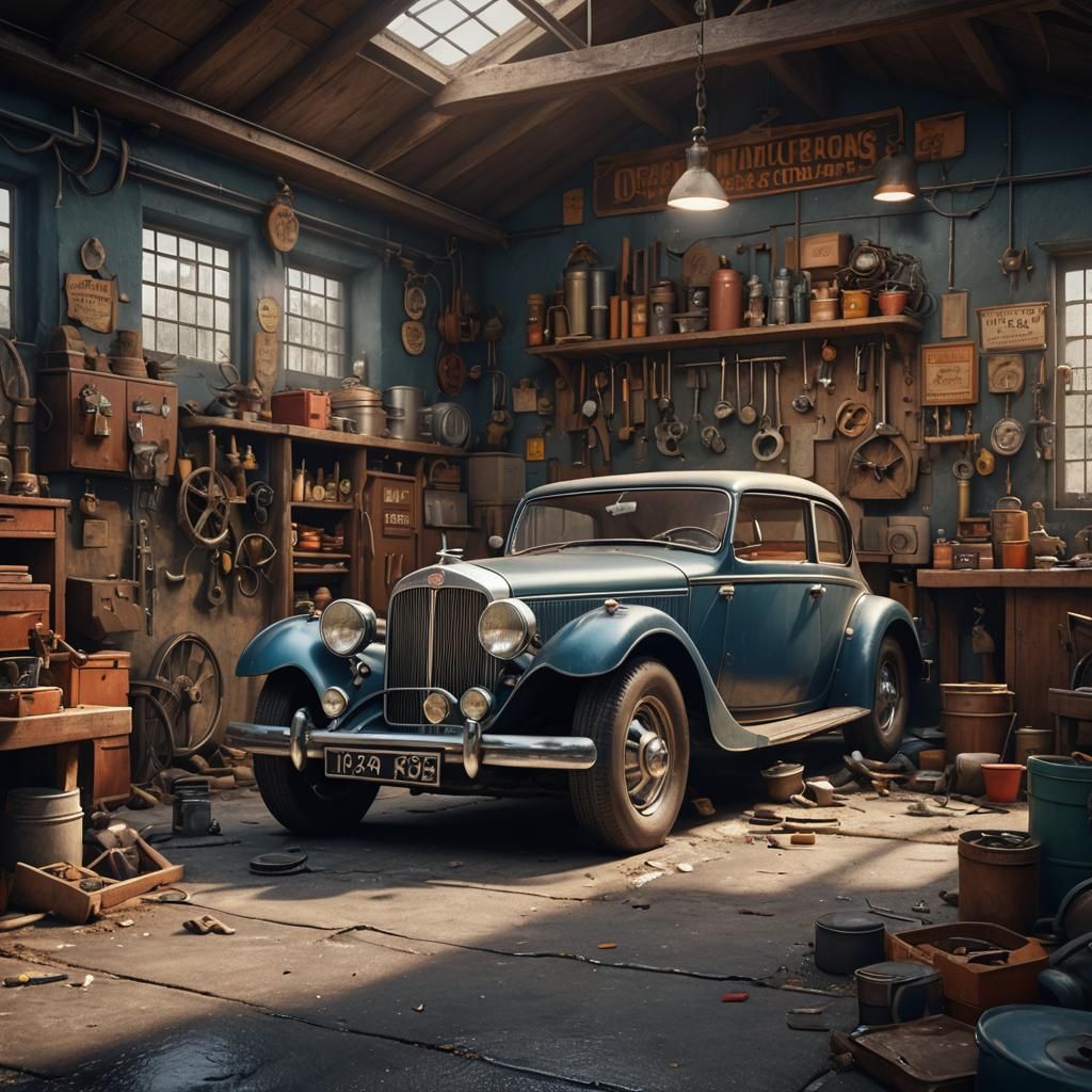 Easily create your own vintage car garage scenes with our free AI image generator.