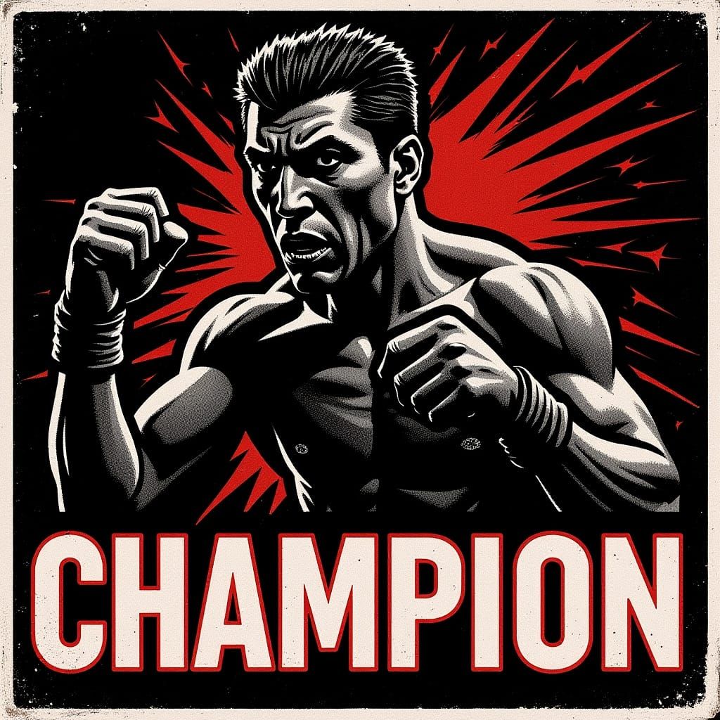 Design unique vintage boxing posters with our free AI generator. Unleash your creativity and make your own 'CHAMPION' designs today!
