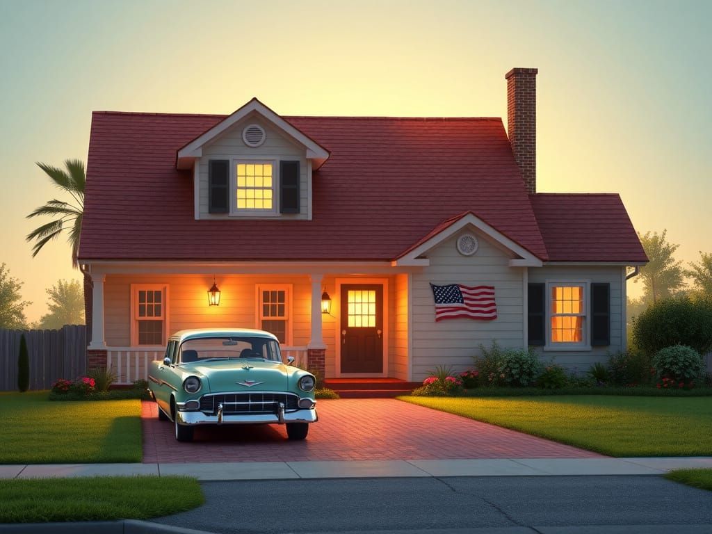 Generate unique vintage American house and car images for free with our easy-to-use AI tool. Start creating now!
