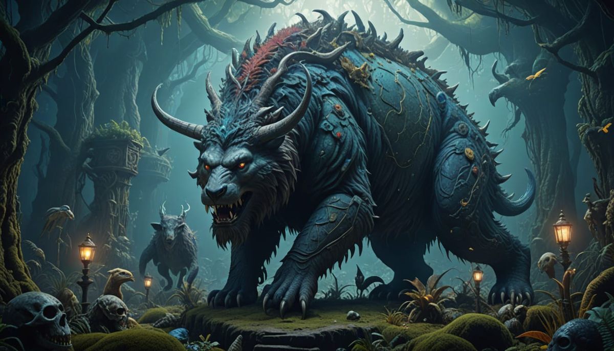 A detailed matte painting of a Cryptid Taxidermy Museum in a fantastical universe. This detailed concept art features deep colors and intricate details in 8k resolution.