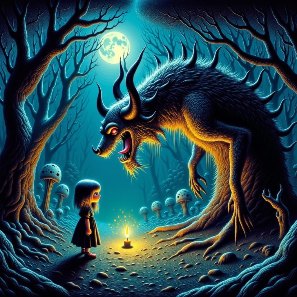 Generate your own dark fairytale illustrations, like girls meeting fauns, for free with our easy-to-use AI image generator.