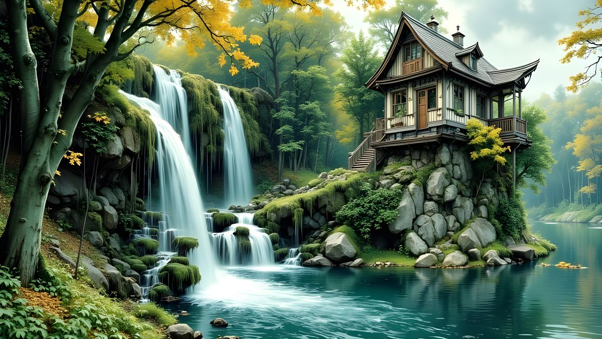 Generate stunning woodland waterfall images with our free and easy AI generator. Start creating now!
