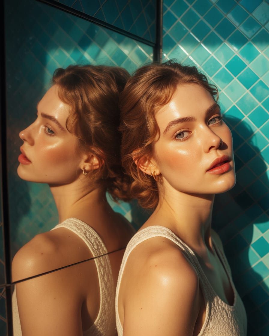 mirroring you you look like me I could believe you're human you are irretrievable you are irrationally lovely you're the wonder in everything that's wonderful must be movie love but you heard the song I was singing for someone else broken bits of you and me sandoil tessellated tourmaline cloisonné RGB-split ...
