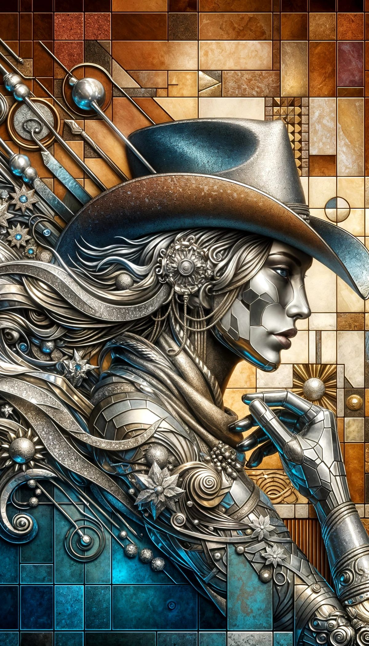 I used the term 'cowboy shot' in the prompt because I was having problems getting a proper 3/4's pic. It's an old photography term (as I am an old photographer, lol). It was originally used as a way to tell the photographer that the image should go to the hip, to be sure that the gun & holster were included in the picture. I thought perhaps the program might recognize it, but obviously not, lol. However, I did get a cool western-themed art piece out of it! Lol 😆🤠