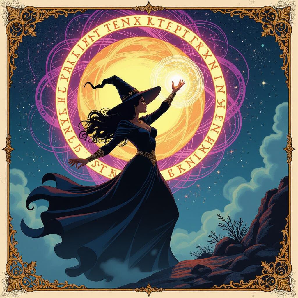 Generate your own vintage comic book covers featuring witches, cosmic battles, and swirling galaxies. Free and easy to use!