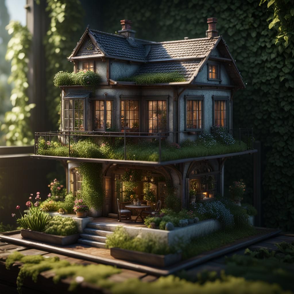 Create your own miniature metal homes with gardens using our free AI image generator. It's easy!