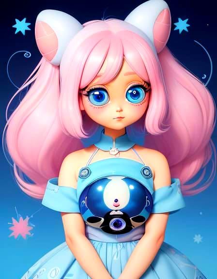 A female in kawai art style, Little girl with pastel pink hair , big rounded eyes, cute, colorful, and full of personality! Kawaii art (((charm, big eyes, soft shapes, and joyful vibes))). Mark Brooks and Dan Mumford comic book art style.