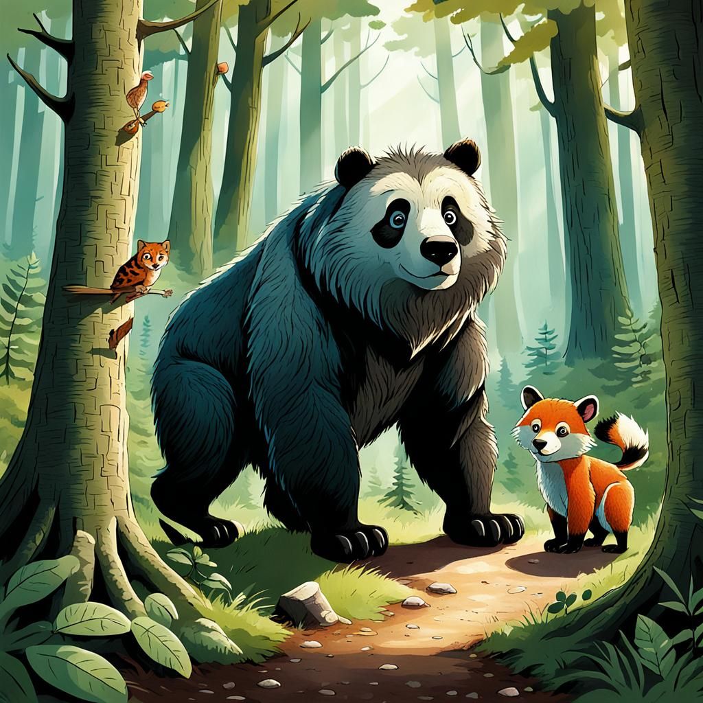 This image shows a charming illustration of woodland creatures, reminiscent of classic children's storybooks. The artwork features soft textures and a warm, inviting color palette.