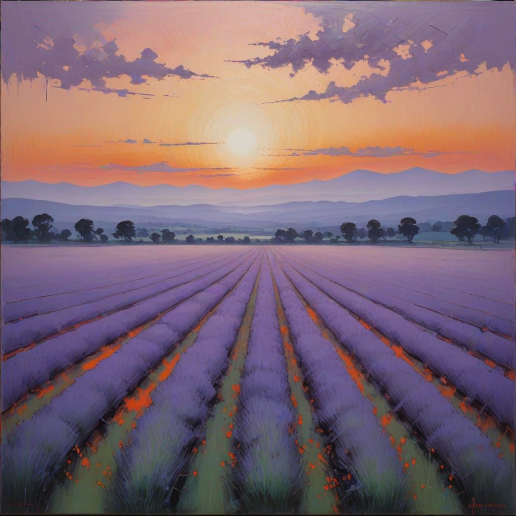 A soothing abstract painting featuring a gentle morning landscape with soft lavender tones and a subtle gradient effect, characteristic of modern Rothko-inspired art.