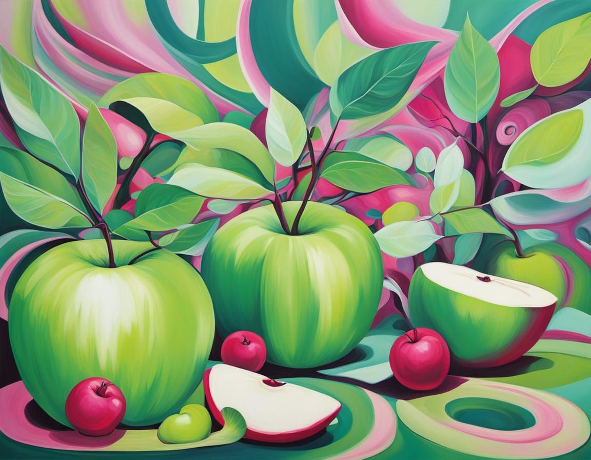 This image presents a surreal abstract portrait of a grandmother, blending elements of Art Deco and Futurism with a vibrant color palette.