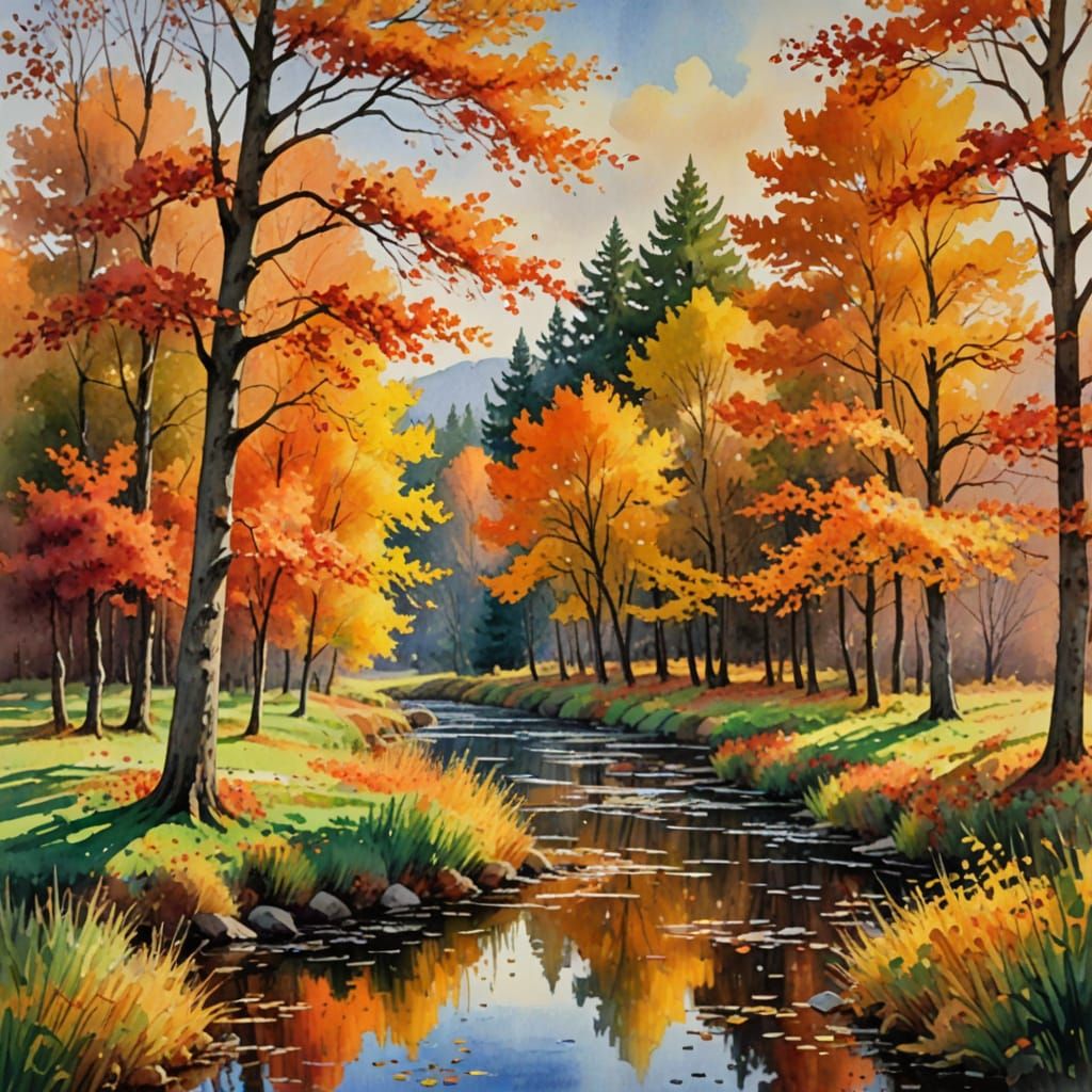 Easily generate your own beautiful autumn landscape watercolors with our free AI tool. Try it now!