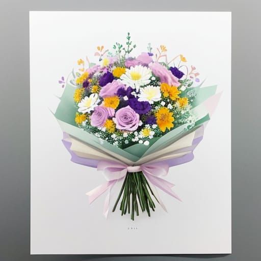 This image shows a floral bouquet including roses, daisies and honeysuckle. The flat illustration features a minimalist tattoo drawing in pastel colors with delicate lines and subtle shading.