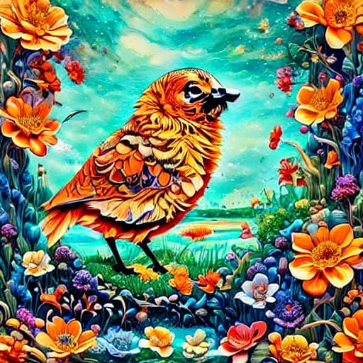 Awww, this is adorable! Strange that you got a bird with the fox and smiley emojis plus "Reina" but I guess one or both of the LoRAs probably have some awesome birds in the dataset(s). I love the textures here especially! Super well done and congrats on 3rd place.