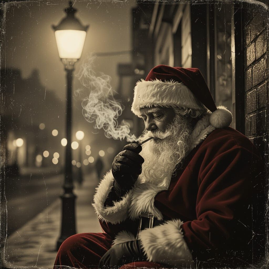 Santa Claus, the man, worn, tired, feeling the weight of the world. Wondering where has our humanity gone. Where has all the kindness and love for one and other gone. He’s not feeling the joy this world has had in the days long past. He seeks peace, he takes pause.