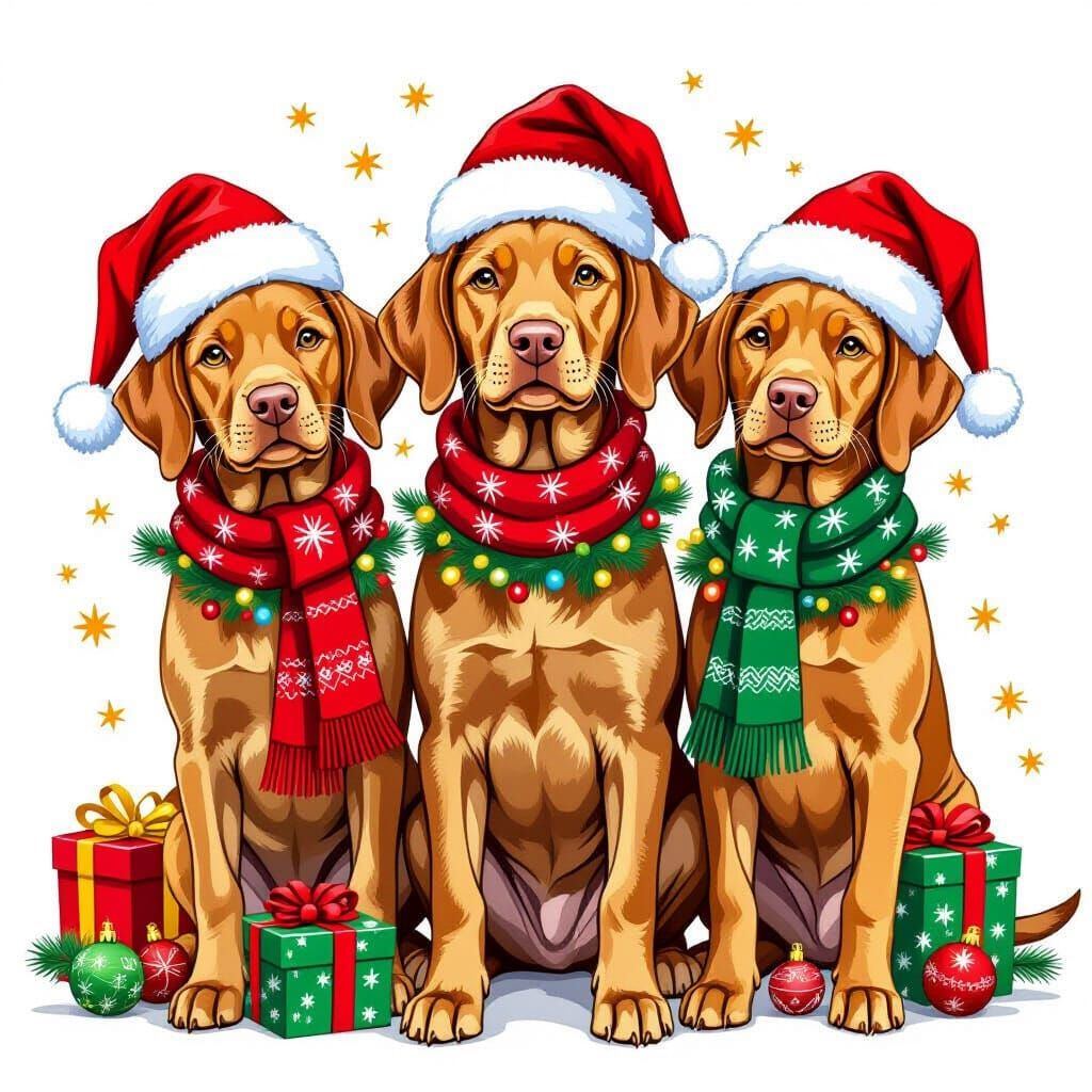 Generate adorable Vizsla dog images for Christmas with our free AI tool. Easy and fun to use!