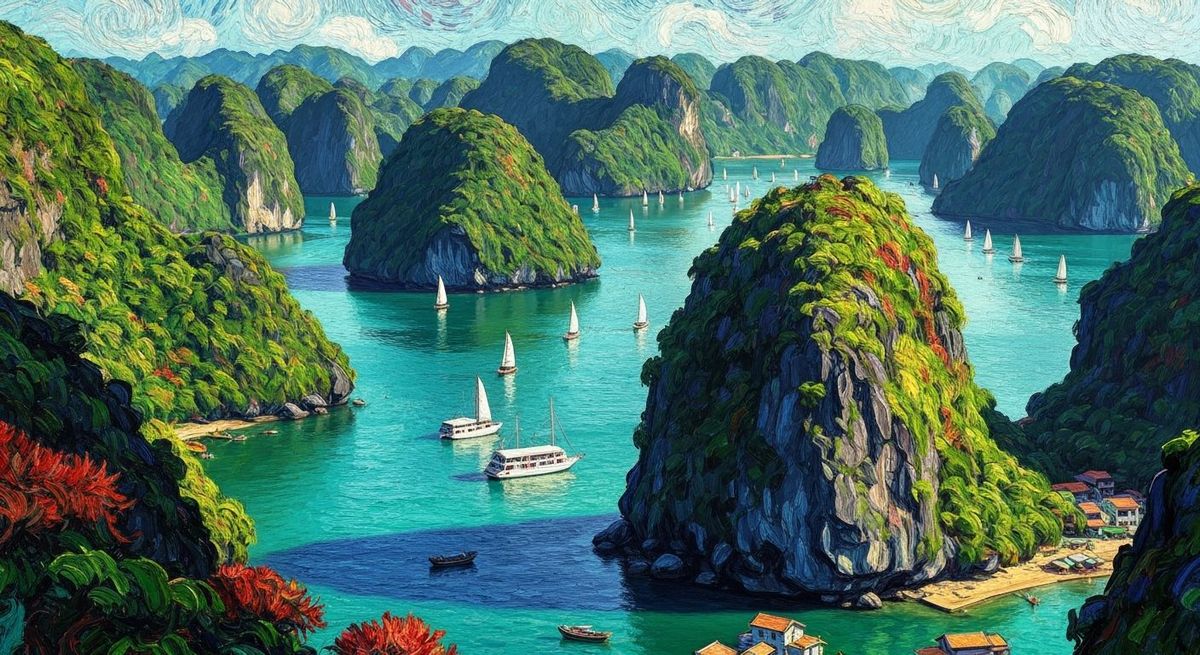 Create your own stunning Halong Bay paintings in the style of Van Gogh. It's free and easy!