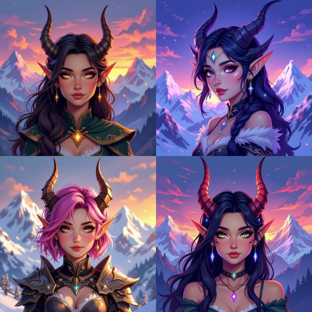 Easily generate unique elf girl profile pictures with dragon horns and mountain backgrounds using our free AI tool.