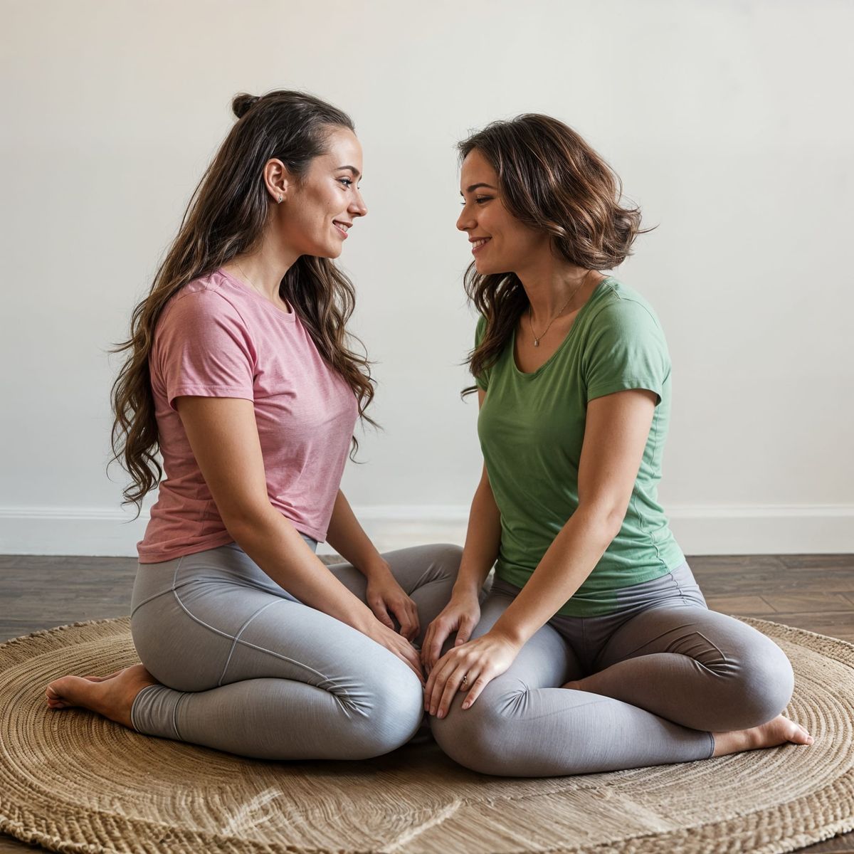 A gentle portrait of two women sharing a quiet, intimate moment. The scene is captured in soft focus, with a warm and calming atmosphere.
