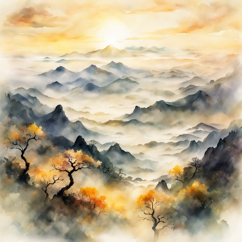 Make your own beautiful watercolor Zen landscape images for free with our AI-powered generator.