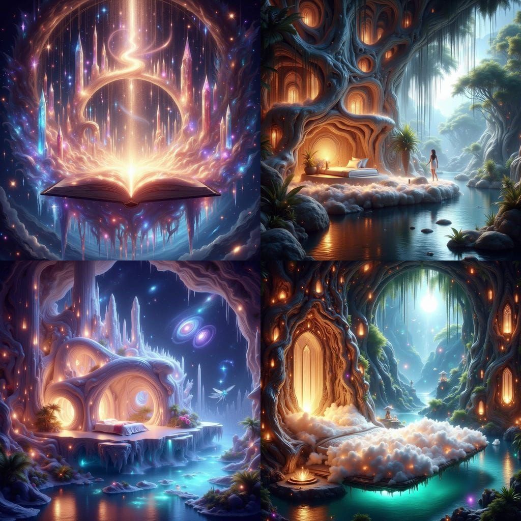 Design unique hanging crystal villas and fantastical island structures. Try our free AI image generator today!