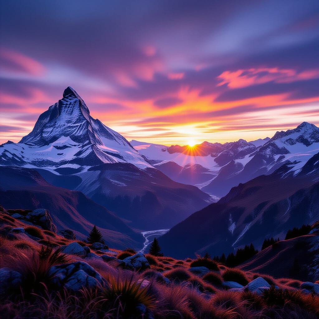 Generate stunning Swiss Alps sunrise images for free. Easy, fast, and fun AI art creation.